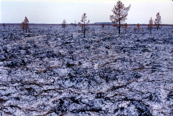 Ельня превратилась в гигантскую пороховую бочку, для возгорания которой достаточно одной искры. И торфяные пожары не преминули возникнуть. В 1993-м, 1994-м, 1998-м, оставляя после себя пепелища от пары десятков до нескольких сотен гектаров. Около 25% территории горело постоянно. Чаще всего воспламенялись вершины болотного массива и участки с нарушенным гидрологическим режимом вдоль дренирующих каналов.