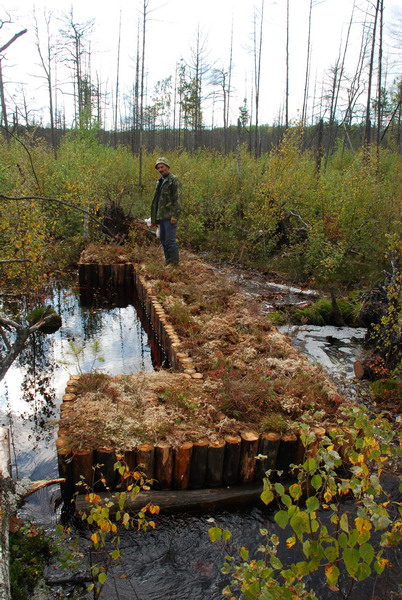 Необходимо было новое каскадное перекрытие основных дренирующих каналов по всему болотному массиву. С этой целью и стартовал в 2007 году проект Программы малых грантов ГЭФ «Оптимизация гидрологического режима центральной части болота Ельня для предупреждения торфяных пожаров, восстановления нарушенных болотных экосистем и биологического разнообразия».