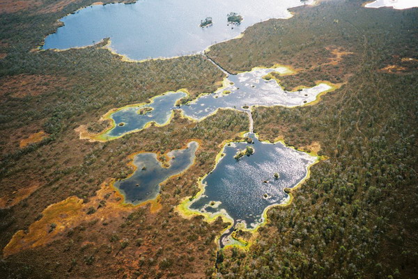 С высоты птичьего полета Ельня выглядит как причудливое мозаичное полотно. Россыпь из 35 крупных и до сотни мелких озер там чередуется с крошечными островками. Они покрыты мелколиственными и еловыми лесами, придавая монотонному болотному ландшафту неповторимое очарование.