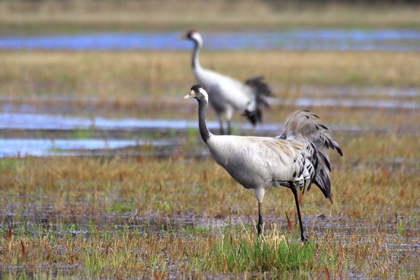 Во время осенней и весенней миграций там останавливаются тысячные стаи пролетных гусей и серых журавлей, в том числе и находящийся на грани вымирания гусь-пискулька. Там даже гнездится типичный представитель тундровой фауны — чернозобая гагара, и только на этом болоте можно встретить настоящую снежную королеву, гостью с далекого Севера — белую куропатку.